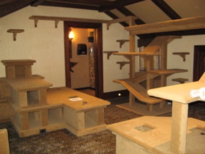 That’s why when one of Trauner’s clients asked them to design a cat room for their new home, the company approached the project with their usual panache. The result is an entire playroom designed in Trauner’s signature rustic style, where some very lucky cats can spend their days jumping, hiding, scratching, and chasing. Plus, the views from one of the windows features Sleeping Indian… how purrfect for a feline who’s been jumping around all day and in need of a cat nap.