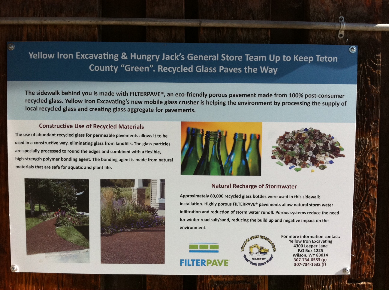 That’s why we’ve been so intrigued by a new technology we’ve seen popping up around Jackson. Filterpave, a hard-surfaced porous pavement made from 100% post-consumer recycled glass, offers environmental benefits that touch many of the issues that impact this region. The material in Filterpave is a mix of elastomeric binder and glass fragments that would typically be landfilled. Then, the porous consistency of the material results in a reduction of storm water runoff, allowing groundwater to be replenished and filtered- an imperative part of sustaining our eco-system.